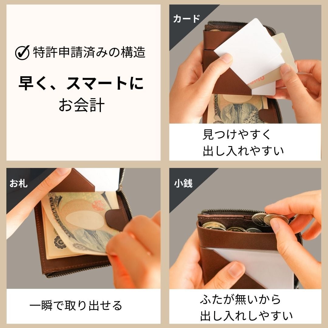 カード、お札、小銭が一目瞭然。たくさん収納して15mmの薄い財布です。